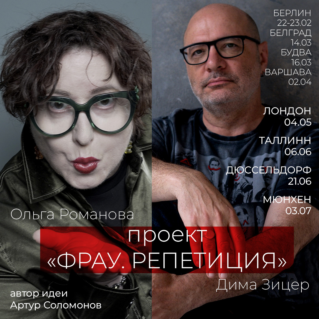 В 2025 году спектакль в постановке Димы Зицера с участием Ольги Романовой “Фрау. Репетиция”, в основу которого легло интервью Артура Соломонова с пожилой немкой, был показан в Берлине, Будве, Белграде, Варшаве, Лондоне, Мюнхене, Дюссельдорфе, Таллинне, Эдинбурге и Париже.