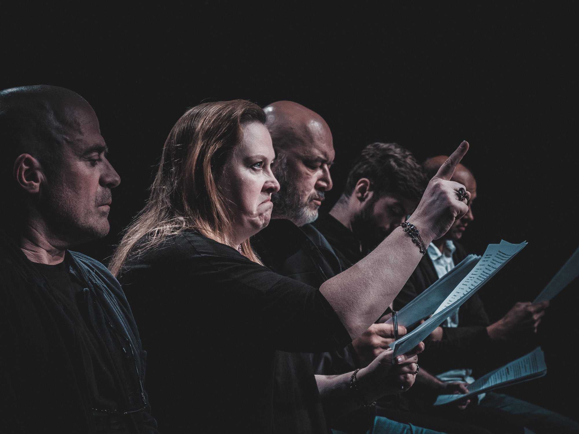 во-первых, @artursolomonov написал замечательный текст. похороны вождя, постановка на сцене похорон вождя, современная политическая сцена, с которой вождь вмешивается в происходящее на сцене, на которой хоронят вождя… здесь столько уровней, что по ним не нагуляешься. вообще, когда тема отношения к прошлому начинает с угрожающим абсурдом проворачиваться в обществе, и ты понимаешь, что в одних головах песок и пепел, а в других – пустота, и вообще-то, довольно страшненько, когда тирана и убийцу можно видеть созидателем и героем (тут «каким глазом посмотреть»), тогда все, что остается – вскрывать абсцесс трагифарсом. только с его помощью можно так очевидно и с юмором проходить по всем ловушкам убежденного абсурда заблуждений. очень хороши актеры! обаяние @juliaaug_fan безгранично. один жестом, одним пальчиком, сидя на стуле, человек создает персонажа. @m_sukhanov умеет даже молчать так, что зритель со стульев падает. то ли от смеха, то ли от ужаса. очень яркие актеры в ролях Драматурга, Берии, Хрущева и Ленина. но что мне понравилось больше всего – это как из технической читки получился полноценный спектакль. возможно, его даже не имеет смысл усложнять разведенными мизансценами, костюмами и гримом. посадил актеров в обычной одежде в ряд перед зрителями – и улетели в мир прозрачной условности. мобильный, актуальный, очень живой, смешной и страшный спектакль. молодая, рыжая, симпатичная режиссер Александра Соколовская.
