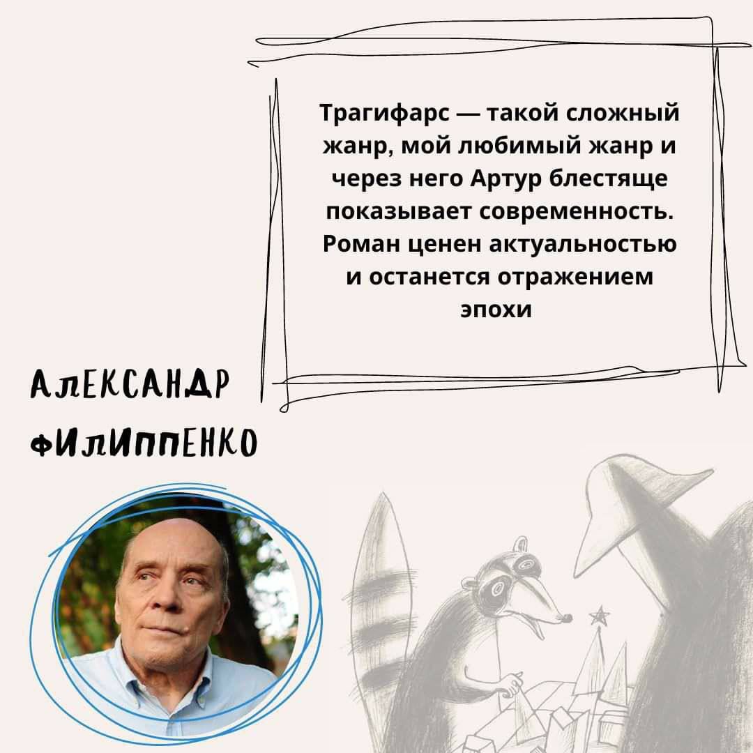 «Это был настолько увлекающий меня поток гротеска и абсурда, что я уже не смущался тем, как далеко перешагнул границы реального и забрел в область фантастического. А потом жизнь перешагнула эту черту — по крайней мере жизнь российская — и полностью ушла в область кровавого абсурда и мрачной фантастики. Как это нередко случается, начались совпадения текста с реальностью», — пишет автор книги Артур Соломонов.