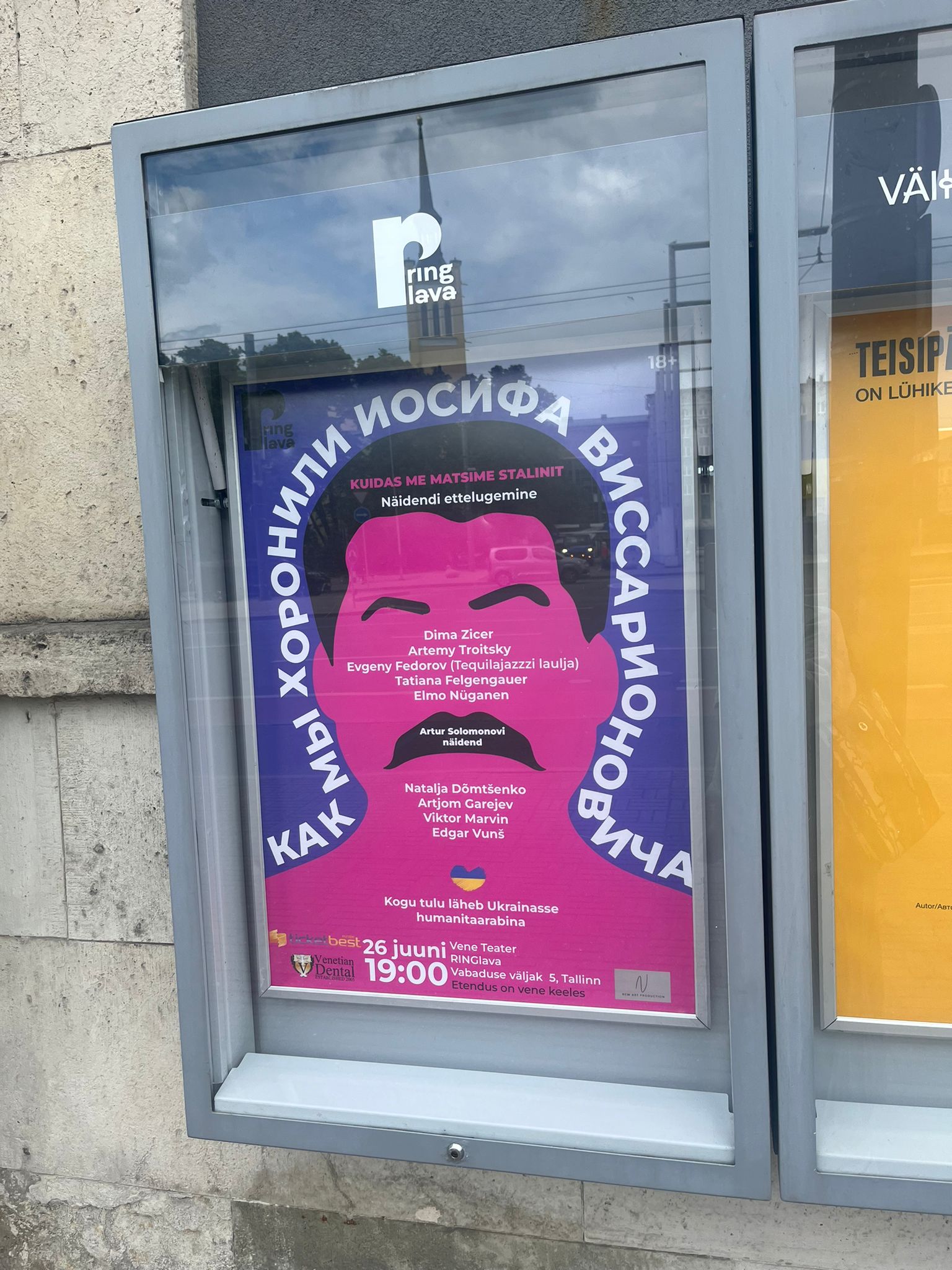 В июне в Таллинне прошла театрализованная читка “Как мы хоронили Иосифа Виссарионовича”. Билеты были раскуплены почти сразу, зал не вместил всех желающих, потому было принято решение читку повторить в большом зале Vene Teater Eestis.