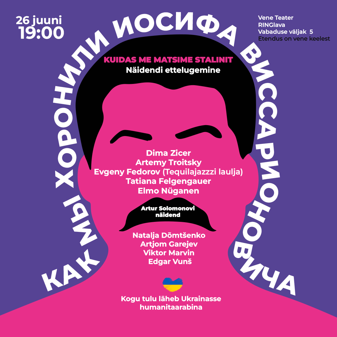 Артур Соломонов «Как мы хоронили Иосифа Виссарионовича», в которой приняли участие профессиональные актеры, журналисты, общественные деятели и музыканты: Дима ЗИЦЕР, Эльмо НЮГАНЕН, Артемий ТРОИЦКИЙ, Татьяна ФЕЛЬГЕНГАУЭР, Евгений ФЕДОРОВ (солист Tequilajazzz), Наталья ДЫМЧЕНКО, Виктор МАРВИН, Артем ГАРЕЕВ и Кирилл ХAВАНСКИЙ. Читка прошла на русском языке с переводом на эстонский (переводчик — Тоомас КАЛЬ). Деньги, собранные на этой читке, пошли на поддержку украинской гражданской больницы, а именно — травматологического отделения больницы города Умань, на поездку шестнадцатилетней украинки Ульяны Примак в Копенгаген на лечение и на аренду эвакуационного автобуса для подопечных нашей команды!