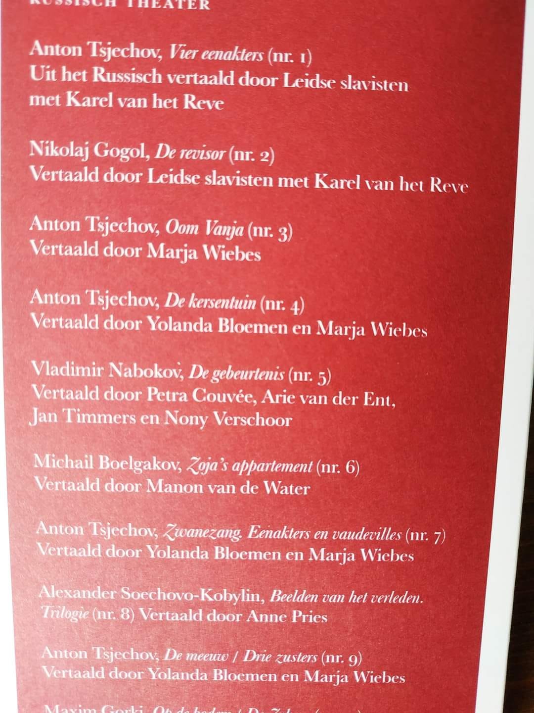 Автор пьесы написал на фейсбуке: “Для меня правда и важно, и радостно, что пьеса издана отдельной книгой на голландском. И компания переведенных автором (см. фото) поднимает настроение))”.